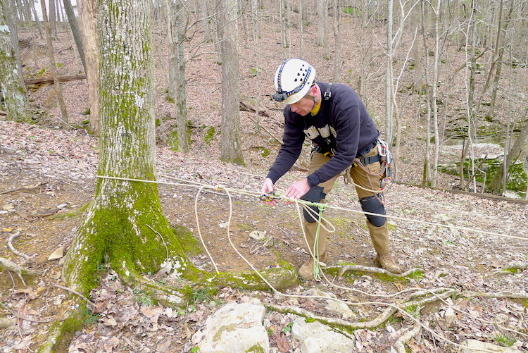 Members of the RAT-SAR team got together for a little Limited Resources Rescue training this past weekend. The training was in preparation for a lightweight rescue class they’re teaching at Southwestern Community College in North Carolina. Some of the skills that will be taught are diminishing loop rescues, breaking into tensioned mainlines, lightweight single rope rigging as an anchor / lower / raise, take down rappels, buddy rappels, traveling hauls, maximizing mechanical advantage for small parties, and the importance of using high directionals to reduce friction.